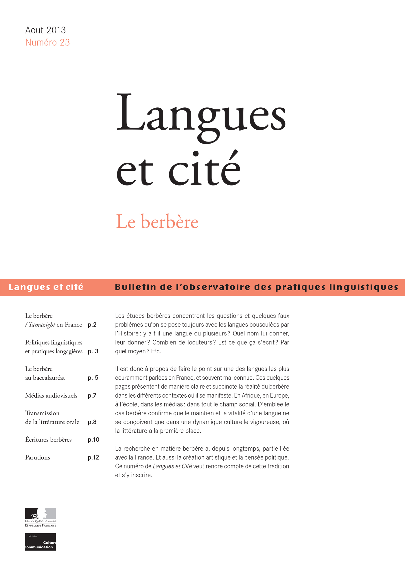 23 | 2013 : Le berbère Le berbère, L&C, n° 23, 2013 Fichier original 00_couv_lc_23_berbere.jpg (image/jpeg – 411k)