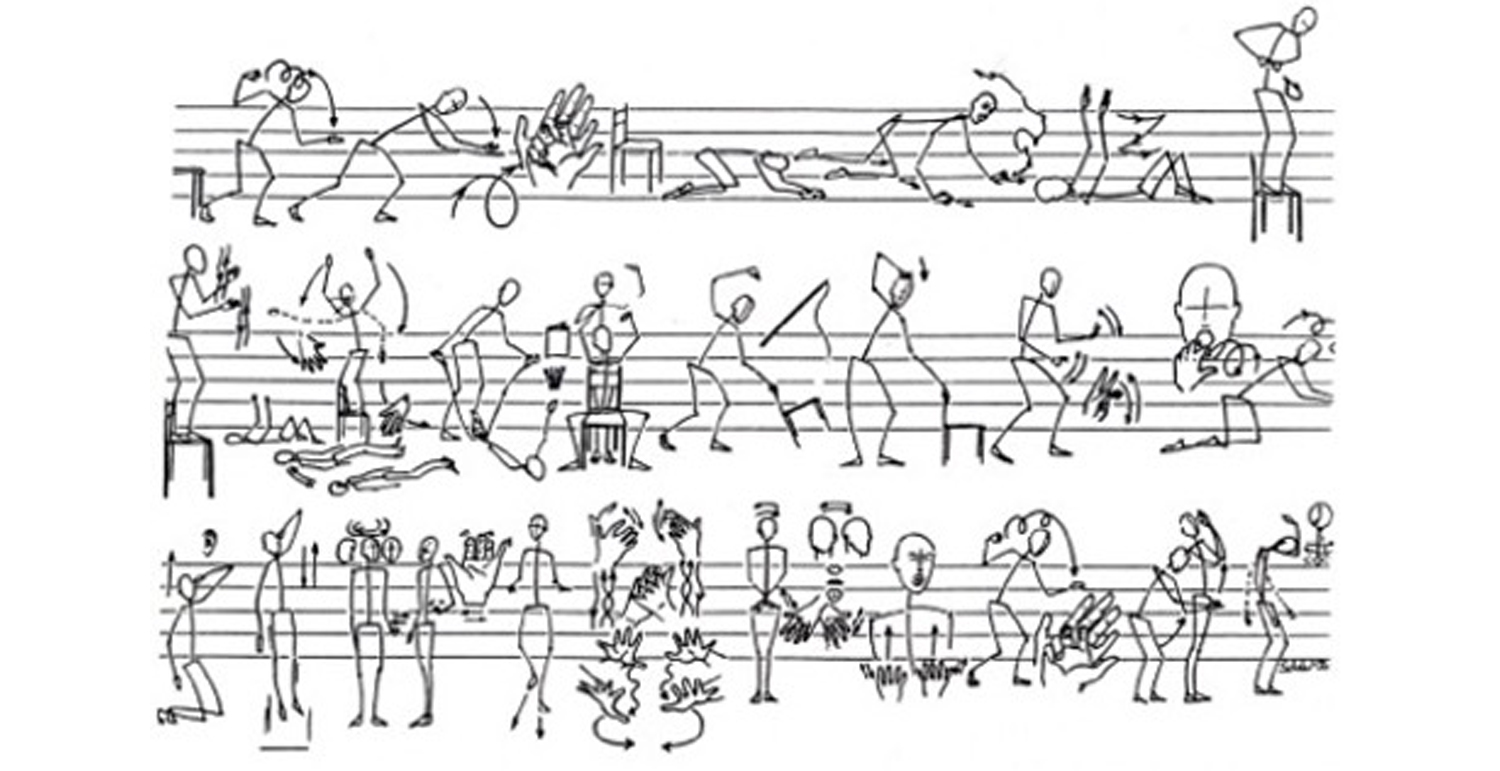 Figure 1. Chorésigne : écriture chorégraphique de Miracle par Hasard, montrant l’enchaînement des mouvements, des expressions du visage ET des mains